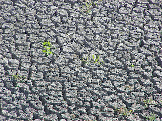 A tó túloldalára is átsétáltunk, ahol egy három szintes kilátó van. Milyen jó lenne ez a kubikban! No meg az egyik tavat is lecserélnénk erre a lecsapoltra. A szárazság gyönyörű rajzolatot mar a földbe. Sirályok ücsörögnek rajta, meg egy billegető cankó keresgélt erre hosszasan.
